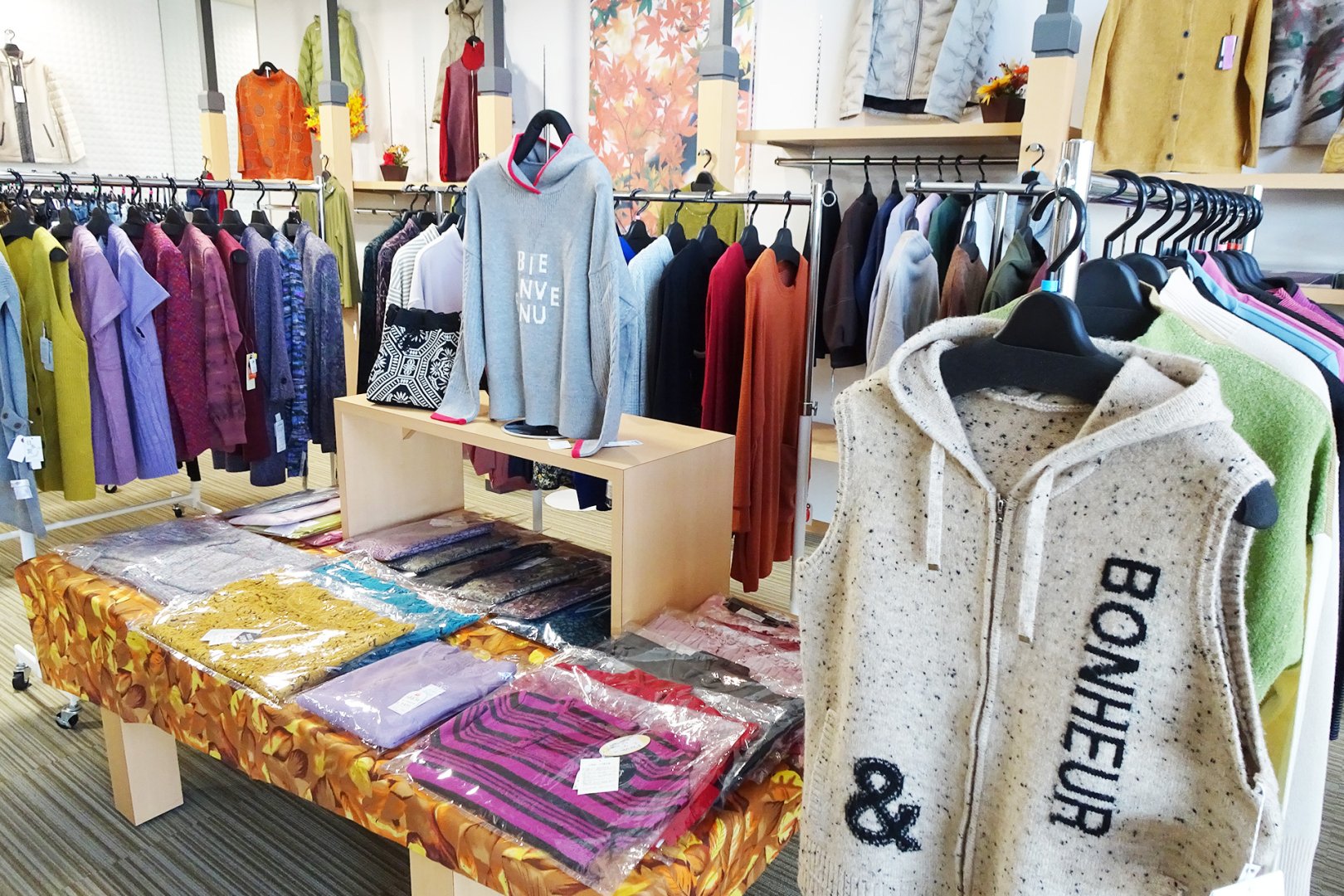 衣料品だけでなく、お茶や胡椒などの厳選された生活用品も取り扱っています。地域の皆様の暮らしに寄り添った商品を揃えています。